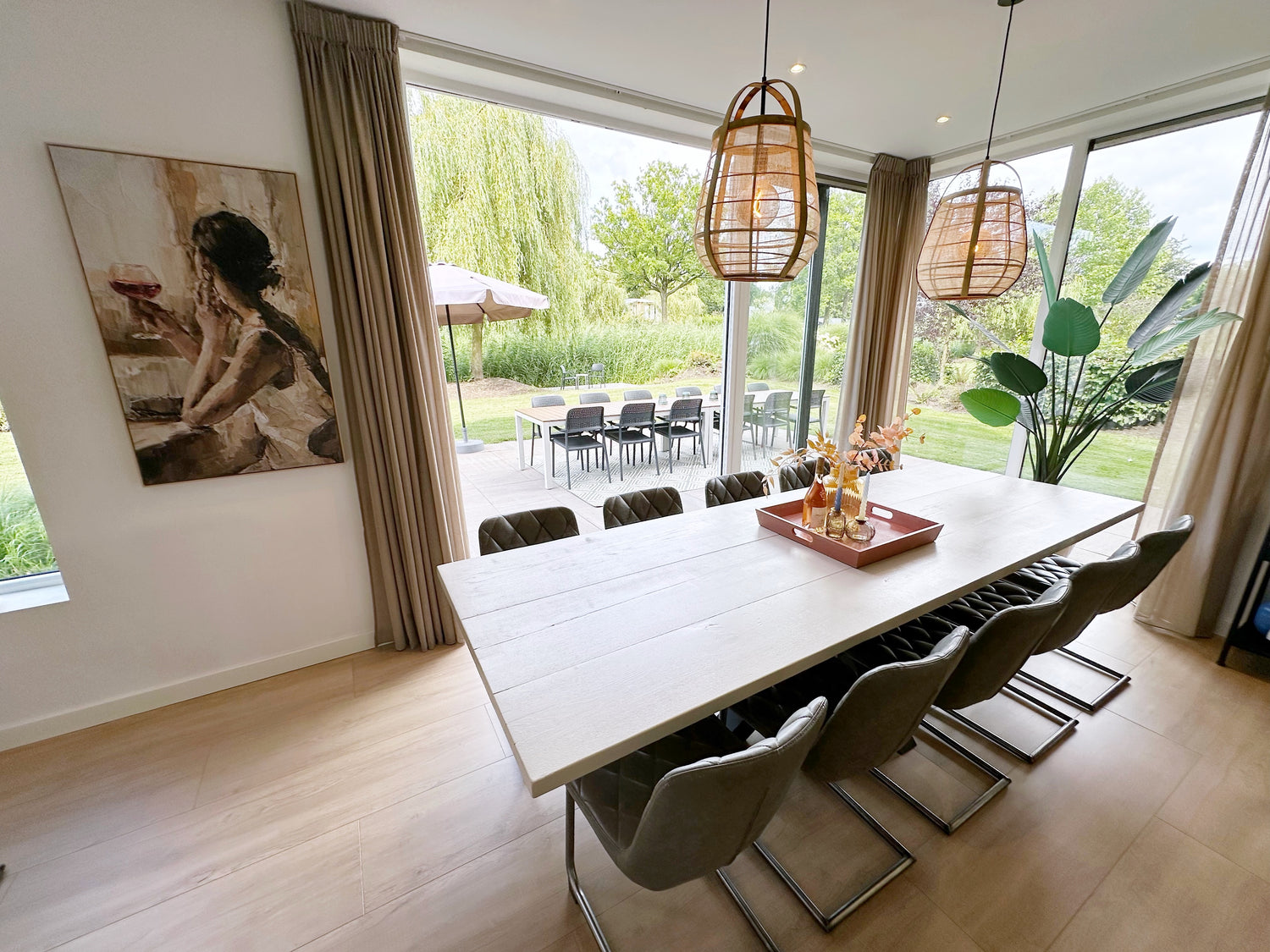 De eettafel kreeg een frisse update en we hebben nieuwe verlichting geplaatst. In combinatie met de nieuwe vloer ontstaat zo een harmonieus en uitnodigend geheel